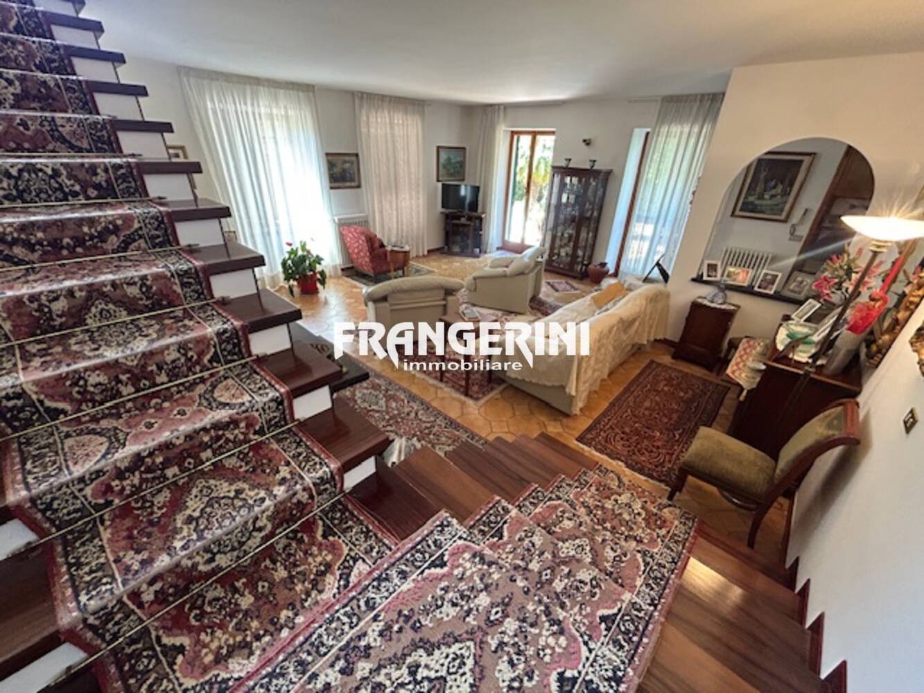 Rif. 4500 PORTA A TERRA - VILLA CON PARCO - In posizione tranquilla, immersa nel verde, proponiamo porzione di circa 300 mq di signorile VILLA d'epoca bifamiliare. L'immobile è disposto su più livelli, servito da PARCO esclusivo di circa 3.000 mq con possibilità di realizzare una piscina. Al piano terreno una spaziosa zona giorno con due saloni con camino ed affacci sul verde, una grande cucina abitabile con accesso a giardino ed un bagno di sevizio. Al primo piano troviamo 2 Camere matrimoniali, 2 bagni con finestra, balcone e 2 ripostigli. Mansarda di circa 60 mq attualmente adibita a camera/studio con accesso a balcone. Taverna di circa 50 mq. Reale possibilità di frazionare in 2 appartamenti indipendenti, grazie anche alla presenza di una scala esterna che accede al primo piano. Il riscaldamento è autonomo. (classe G) La richiesta è di euro 520.000 trattabili. (Possibilità di acquisto di una nuda proprietà di un immobile nelle vicinanze)